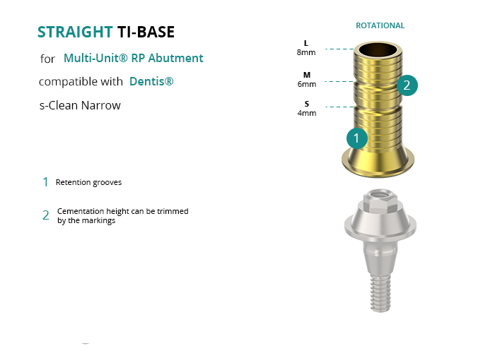 Titanium Straight Base for Multi-Unit® RP Abutment compatible with Dentis® s-Clean Narrow