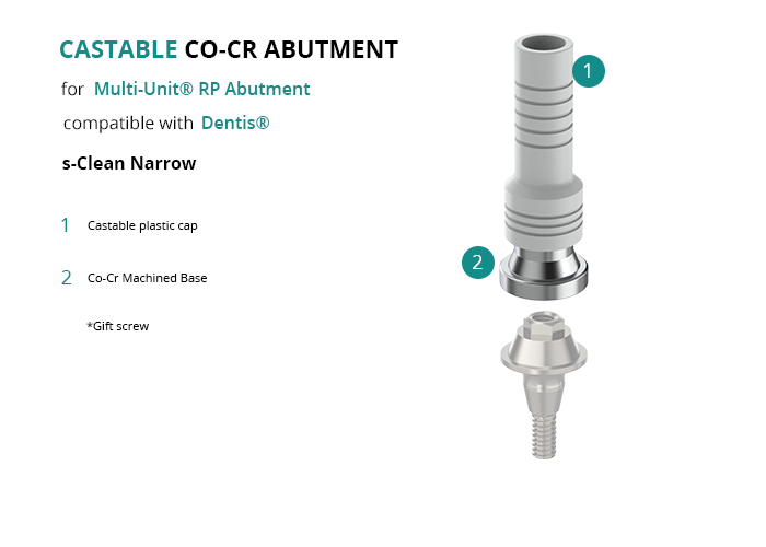 Castable Abutment with Co-Cr Base for Multi-Unit® RP Abutment compatible with Dentis® s-Clean Narrow