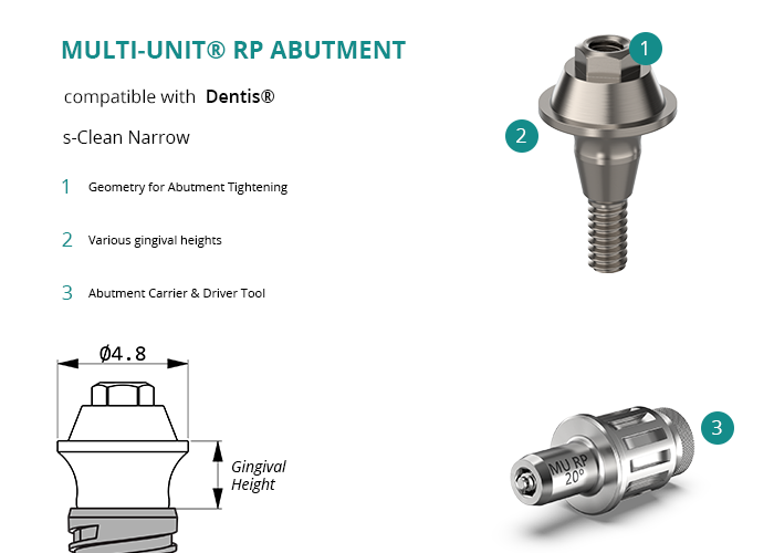 Multi-Unit® RP Abutment compatible with Dentis® s-Clean Narrow