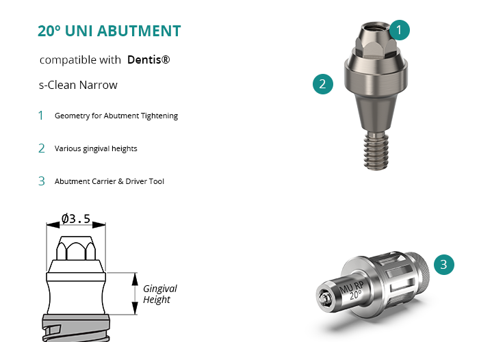 20º Uni Abutment compatible with Dentis® s-Clean Narrow