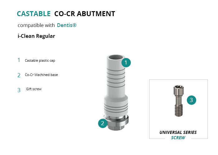 Castable Abutment with Co-Cr Base compatible with Dentis® i-Clean Regular