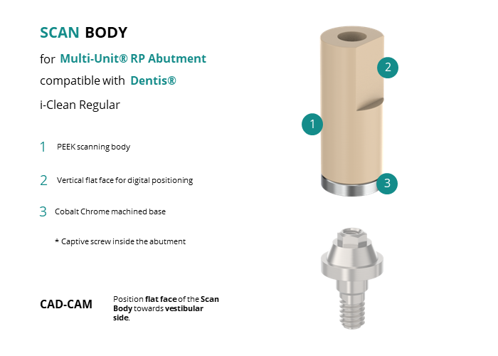 Scan Body for Multi-Unit® RP Abutment compatible with Dentis® i-Clean Regular