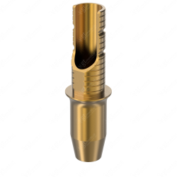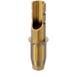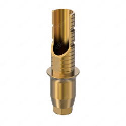 GT-Medical's Angled Ti-Base are compatible with s-Clean Regular/Wide implants from Dentis®, ensuring a stable and long-lasting connection between the implant and the prosthesis, while also allowing angulations to be corrected up to 25 degrees. They are made entirely of Titanium Grade 5 with a yellow anodizing for a more aesthetic finish. They have a cementation trunk that can be cut to various heights with an open channel to allow angulation, 3 flat faces to perform the anti-rotating function and a gingival body of various heights, depending on the type of connection.