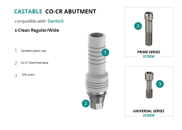 Castable Abutment with Co-Cr Base compatible with Dentis® s-Clean Regular/Wide
