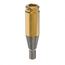 The Compatible Locator® Abutment of Gt-Medical is made of Titanium Grade 5 with a TIN finish to prevent bacterial plaque adhesion and ensure optimal sliding with the retention pack.