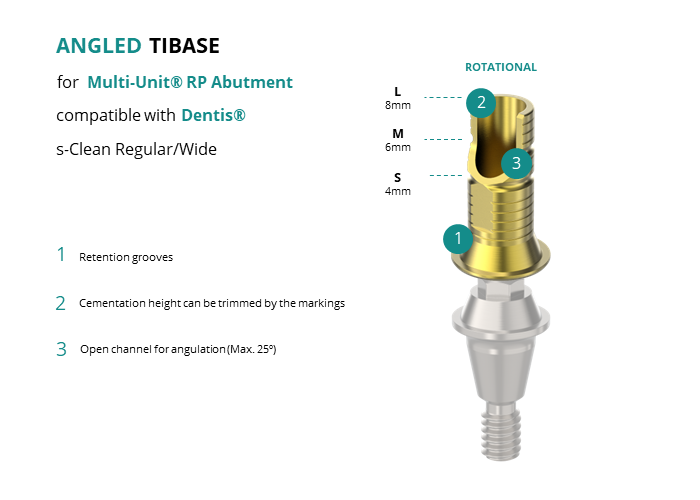 Angled Titanium Base for Multi-Unit® RP Abutment compatible with Dentis® s-Clean Regular/Wide