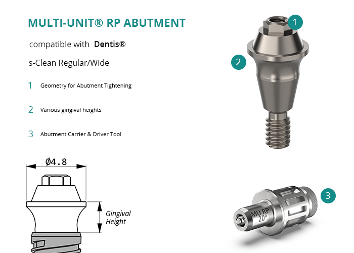 Multi-Unit® RP Abutment compatible with Dentis® s-Clean Regular/Wide