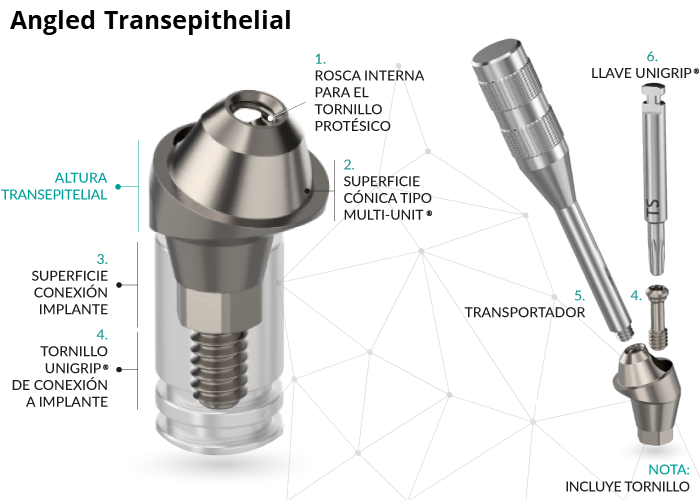The union of the transepithelial with the prosthetic structure is made through the Multi-Unit® screw.