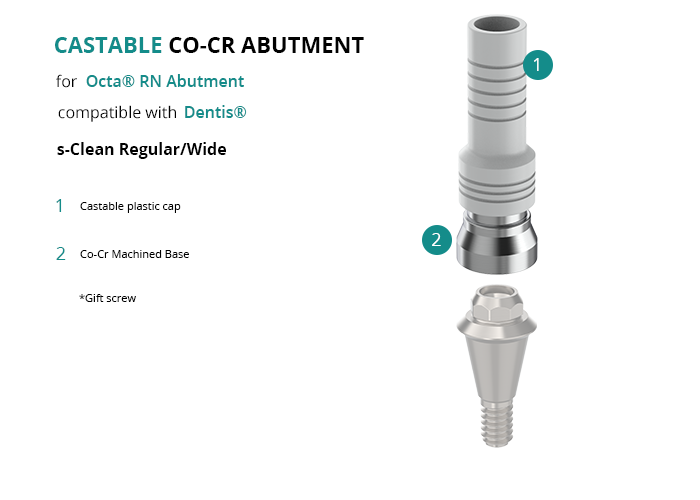 Castable Abutment with Co-Cr Base for Octa® RN Abutment compatible with Dentis® s-Clean Regular/Wide