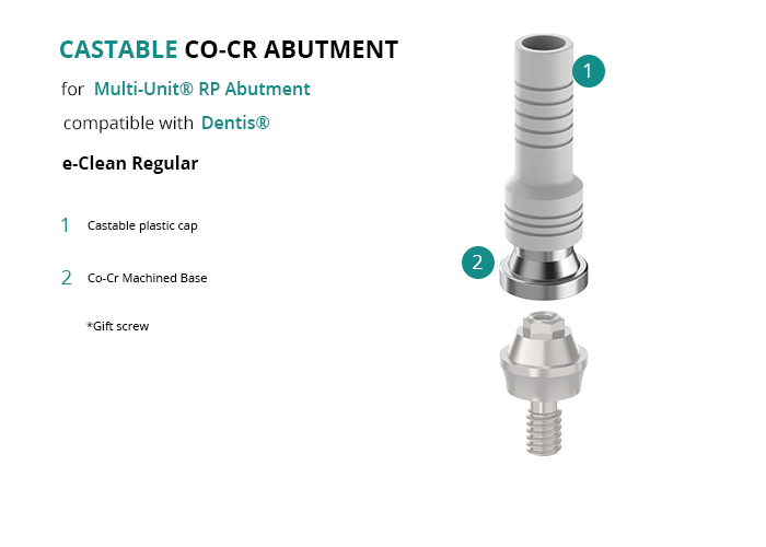 Castable Abutment with Co-Cr Base for Multi-Unit® RP Abutment compatible with Dentis® e-Clean Regular