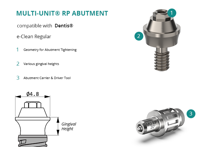 Multi-Unit® RP Abutment compatible with Dentis® e-Clean Regular