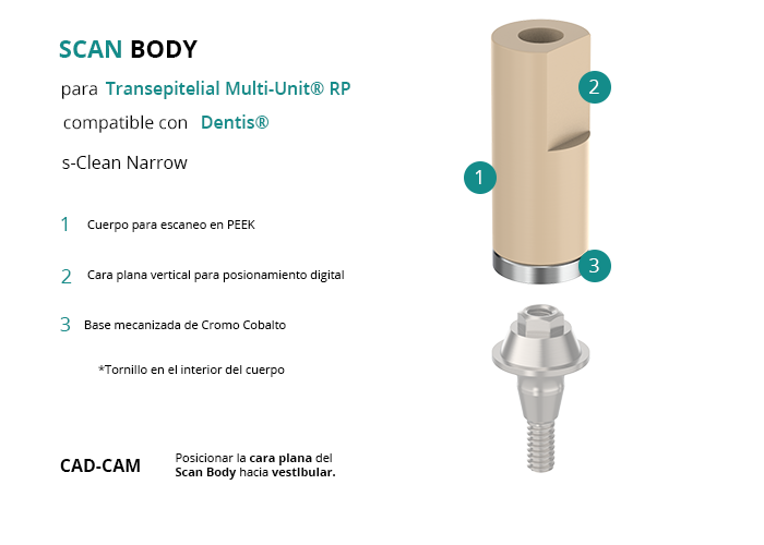 Scan Body para Transepitelial Multi-Unit® RP compatible con Dentis® s-Clean Narrow