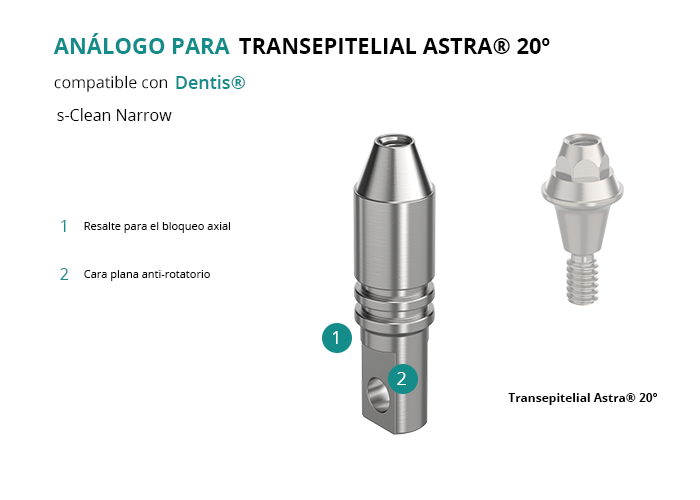 Análogo para Transepitelial Astra® 20º Compatible con Dentis® s-Clean Narrow
