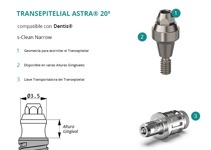 Transepitelial Astra® 20º compatible con Dentis® s-Clean Narrow