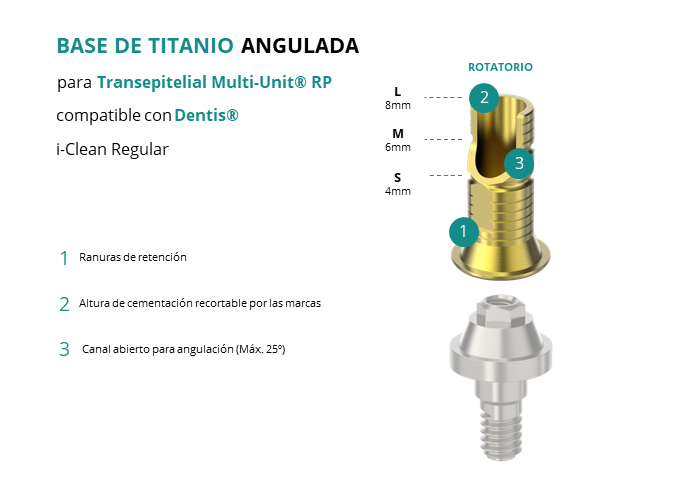 Base de Titanio Angulada para Transepitelial Multi-Unit® RP compatible con Dentis® i-Clean Regular