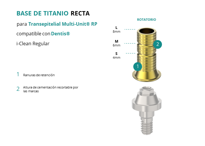 Base de Titanio Recta para Transepitelial Multi-Unit® RP compatible con Dentis® i-Clean Regular