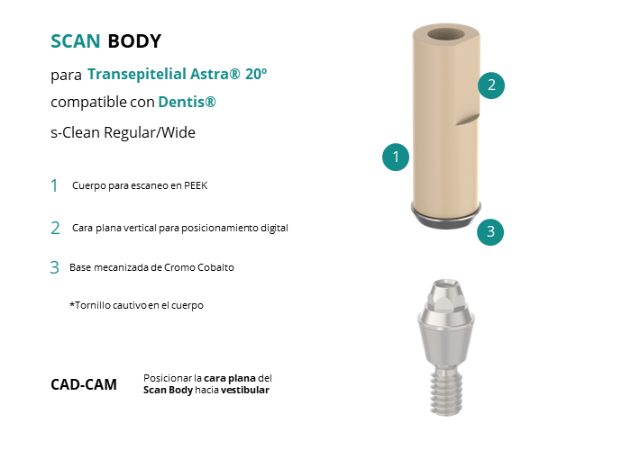 Scan Body para Transepitelial Astra® 20� compatible con Dentis® s-Clean Regular/Wide